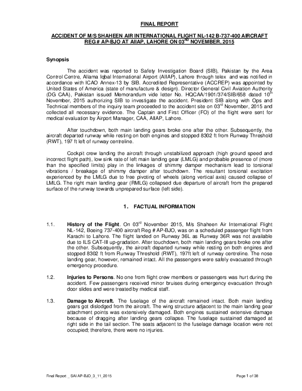 Final Report B734 (AP-BJO) RE at Lahore Pakistan 3 Nov 2015