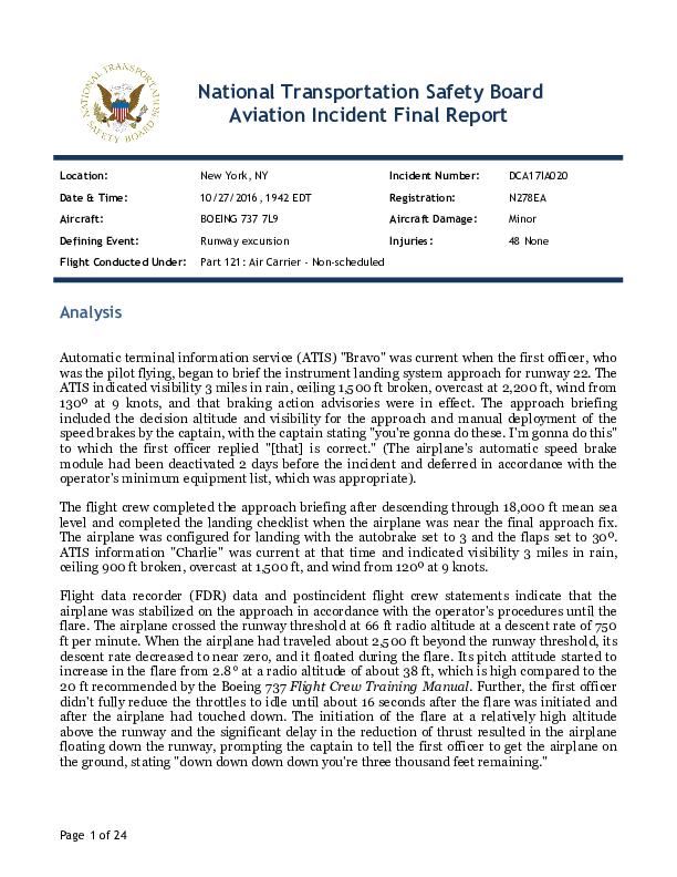 Final Report B737 (N278EA) RE at New York La Guardia USA, 27 Oct 2016