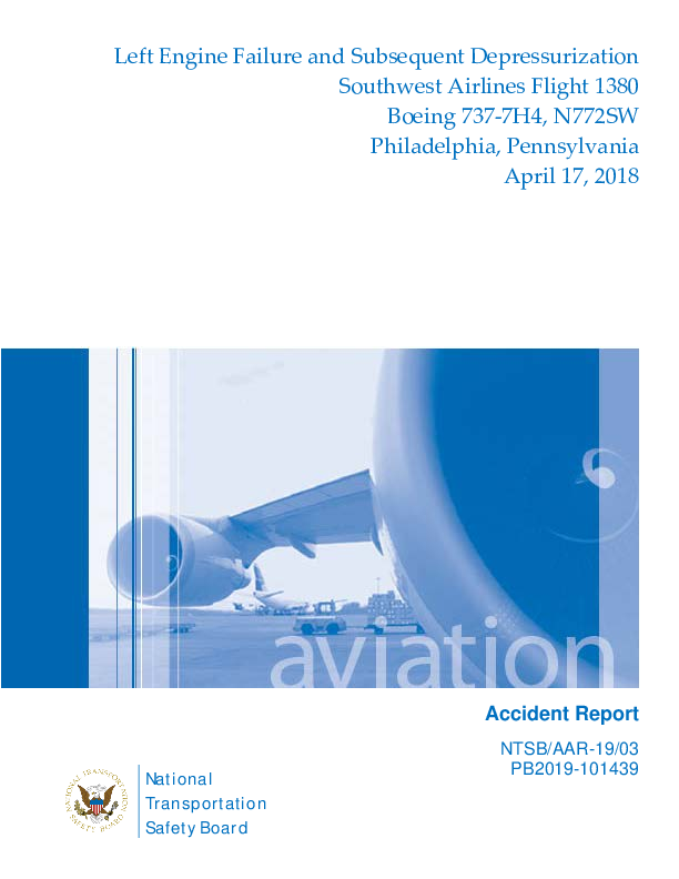 Final Report B737 (N772SW) northwest of Philadelphia USA, 14 Apr 2018