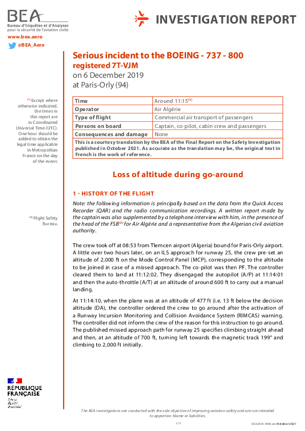 Final Report B738 (7T-VJM), vicinity Paris Orly France, 6 December 2019
