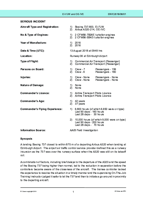 Final Report B738 / A320, Edinburgh UK, 13 Aug 2018