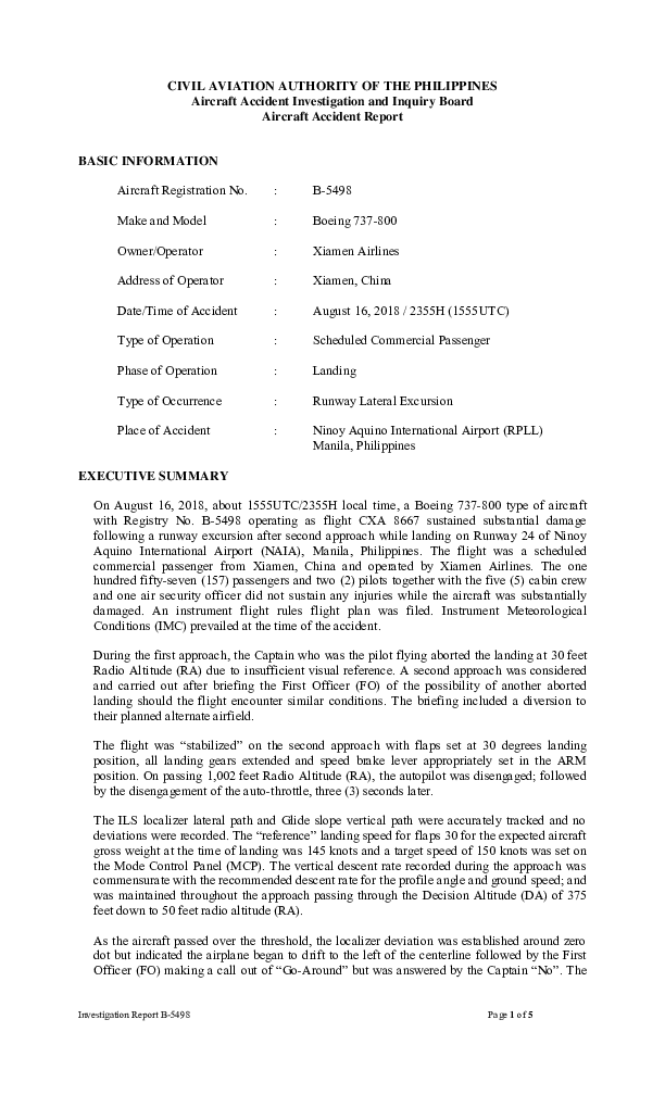 Final Report B738 (B-5498) Manila Phillipines 16 Aug 2018