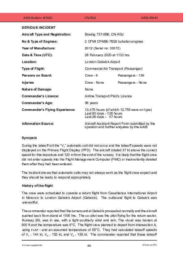 Final Report B738 (CN-RGJ) London Gatwick UK, 28 Feb 2020