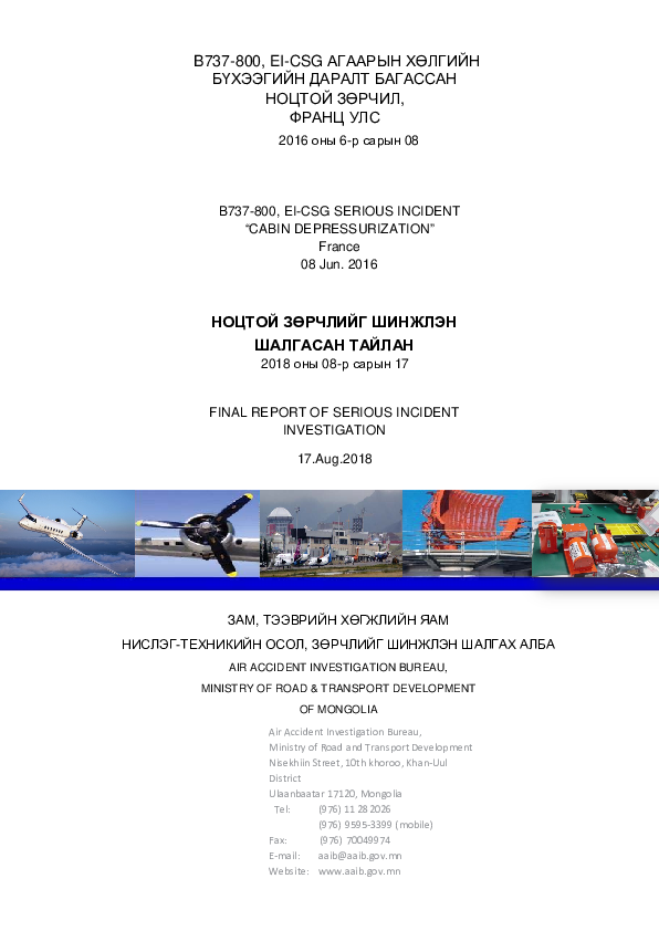 Final Report B738 (EI-CSG), en-route NE of Toulouse France, 8 June 2016