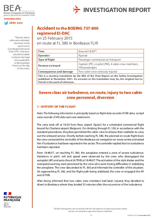 Final Report B738 (EI-DAC), en-route SSW of Toulouse France, 25 February 2015