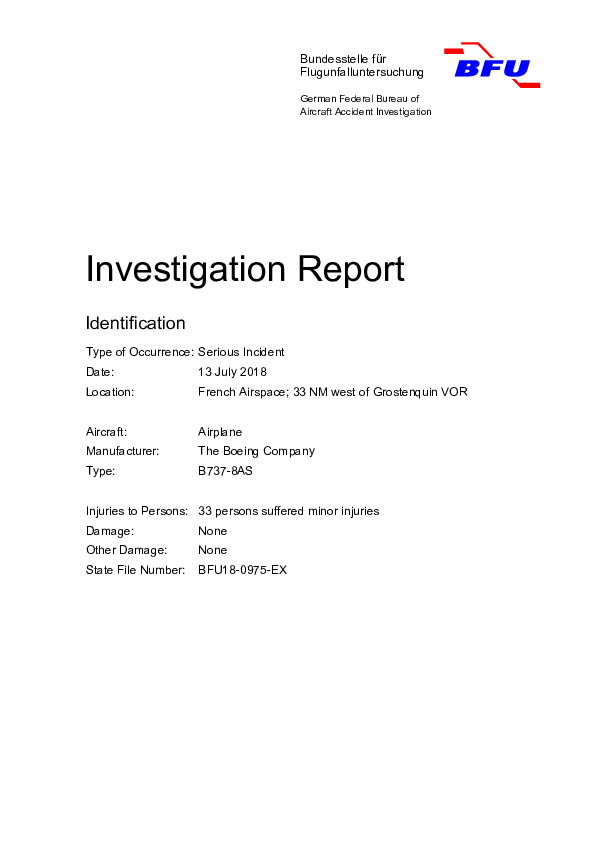 Final Report B738 (EI-EMN), en-route SW of Metz France, 13 July 2018