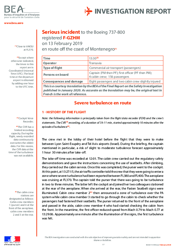 Final Report B738 (F-GZHM) en route west of Bar Montenegro, 13 Feb 2019