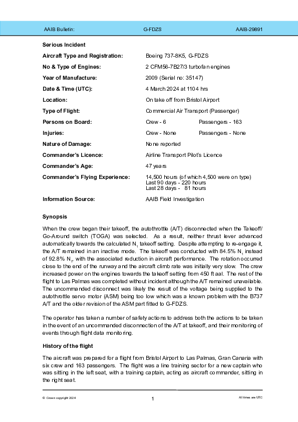 Final Report B738 (G-FDZS), Bristol UK, 4 March 2024