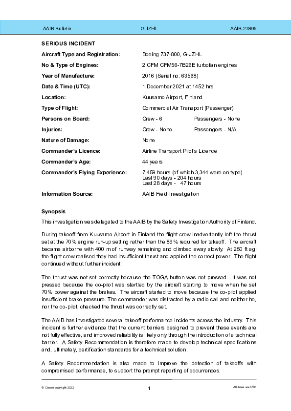 Final Report B738 (G-JZHL), Kuusamo Finland, 1 December 2021