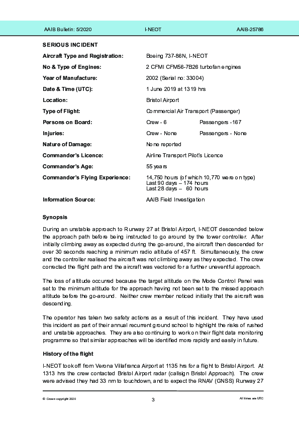 Final Report B738 (I-NEOT) vicinity Bristol UK, 1 June 2019