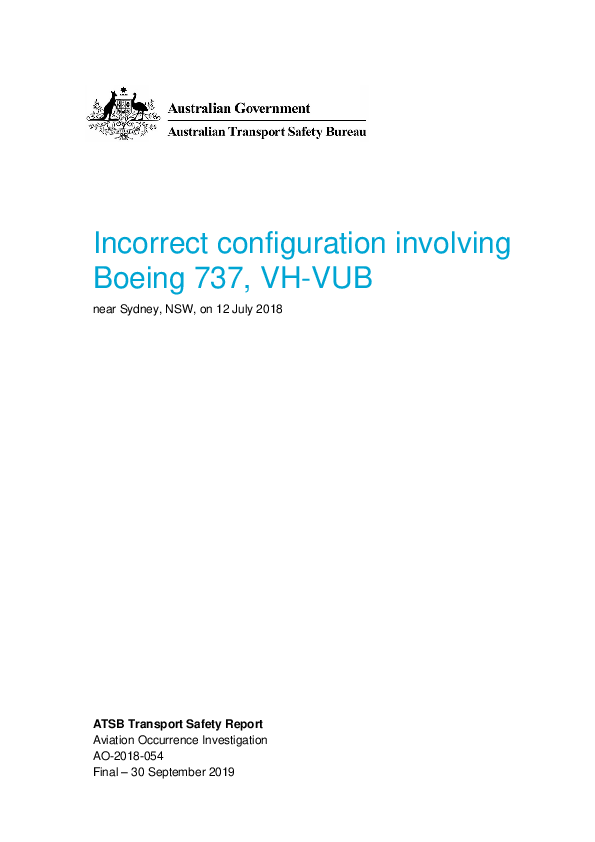 Final Report B738 (VH-VUB) en route near Sydney Australia,12 July 2018