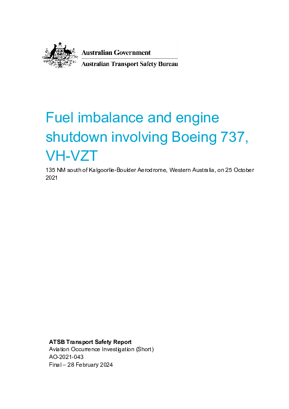 Final Report B738 (VH-VZT), en-route, South of Kalgoorlie Australia, 25 October 2021
