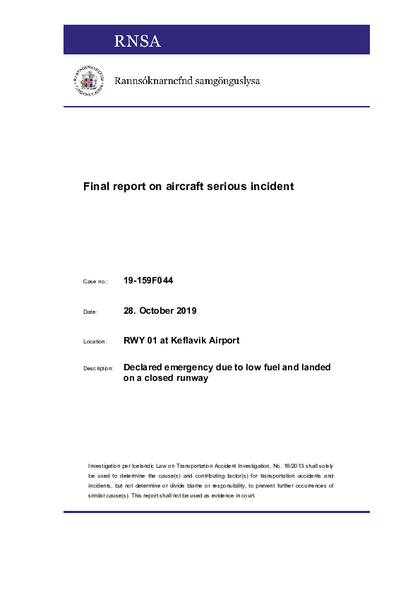 Final Report B752 (TF-ISF), Keflavik Iceland, 28 October 2019