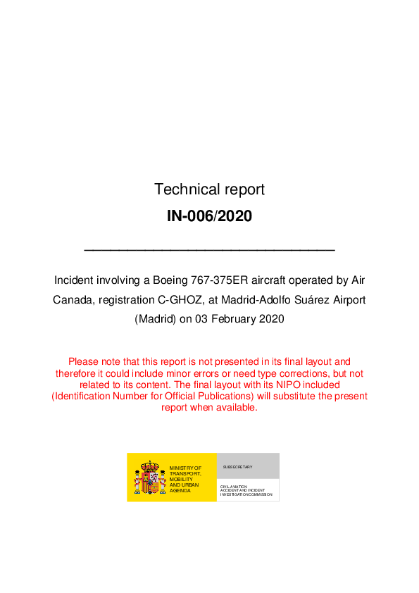 Final Report B763 (C-GHOZ), Madrid Barajas Spain, 3 November 2020