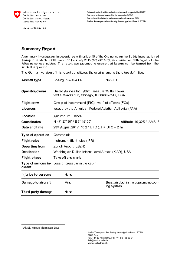 Final Report B764 (N68061) en route Audincourt France, 23 Aug 2017