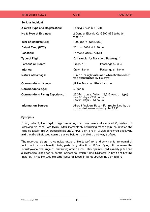 Final Report B772 (G-VIIT), London Gatwick UK, 28 June 2024
