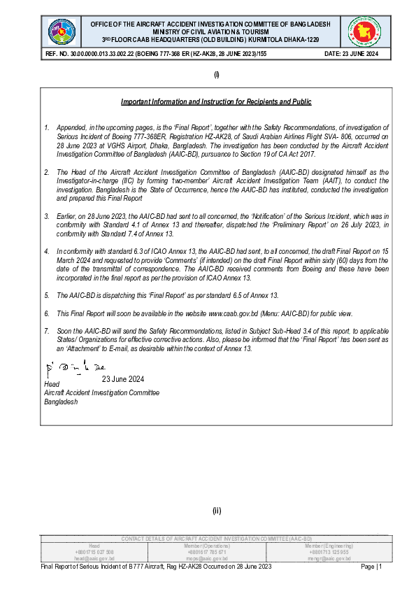 Final Report B773 (HZ-AK28), Dhaka Bangladesh, 20 June 2023
