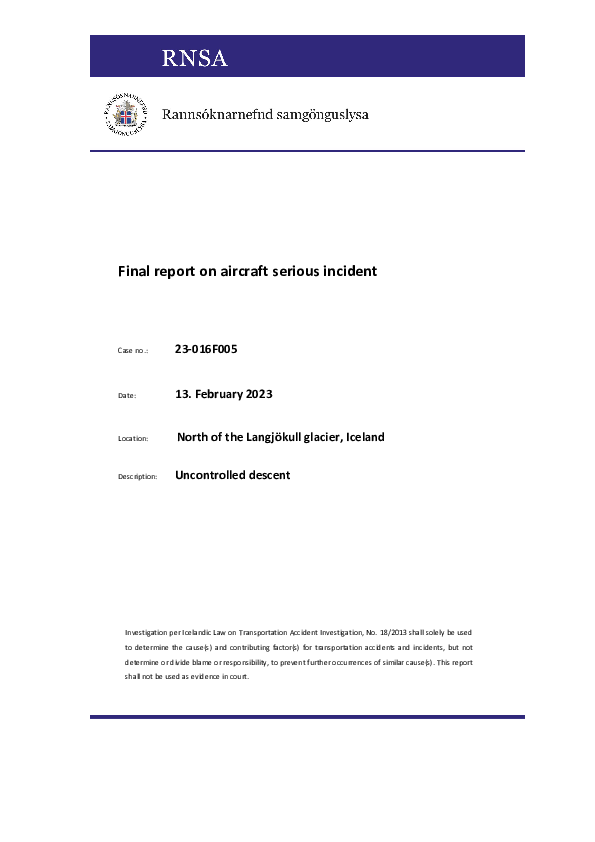 Final Report B773 (TC-JJJ), en-route, central Iceland, 13 February 2023