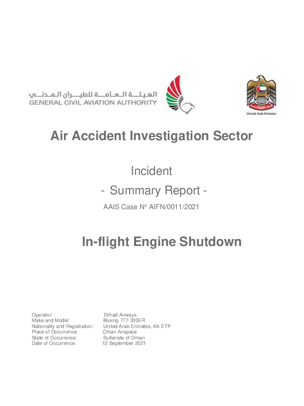 Final Report B77W (A6-ETP), en-route east of Oman, 12 September 2021