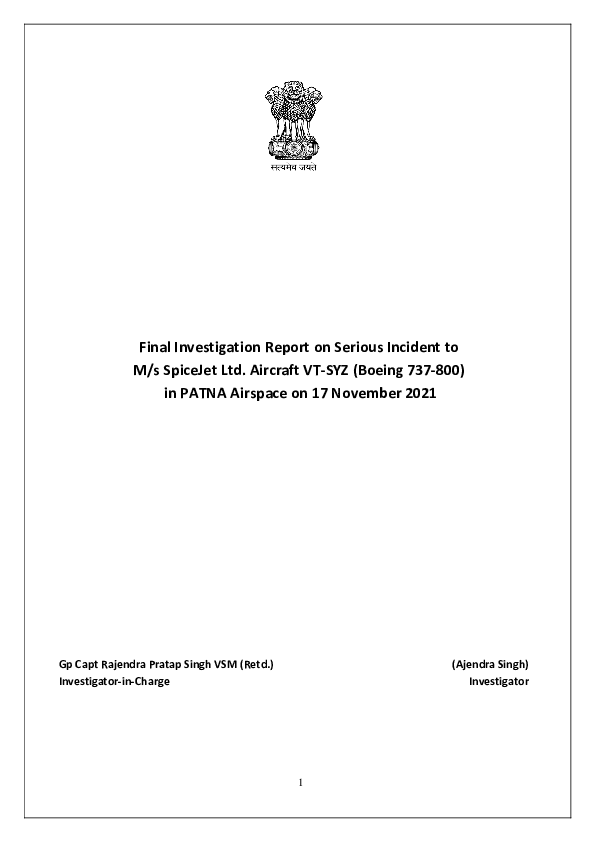 Final Report B78 (VT-SYZ), southeast of Varanasi India, 17 November 2021