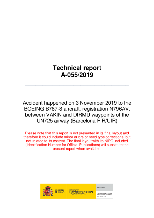 Final Report B788 (N796AV), en-route near Huesca NE Spain, 3 November 2019