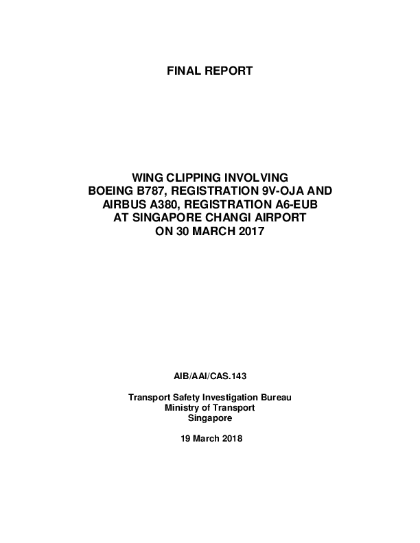Final Report B789 (9V-OJA) & A388 (A6-EUB), Singapore, 30 Mar 2017
