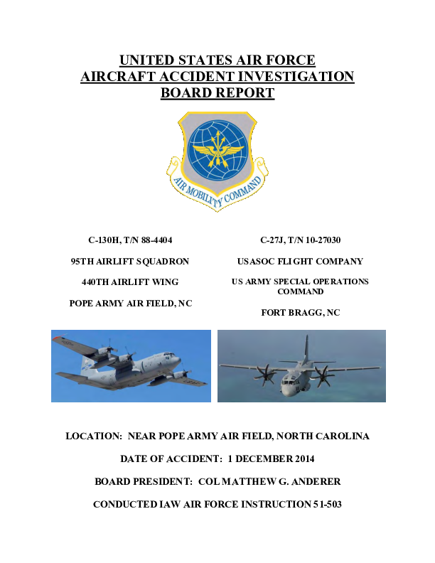 Final Report C130 & C27J near Mackall AAF NC USA, 1 Dec 2014