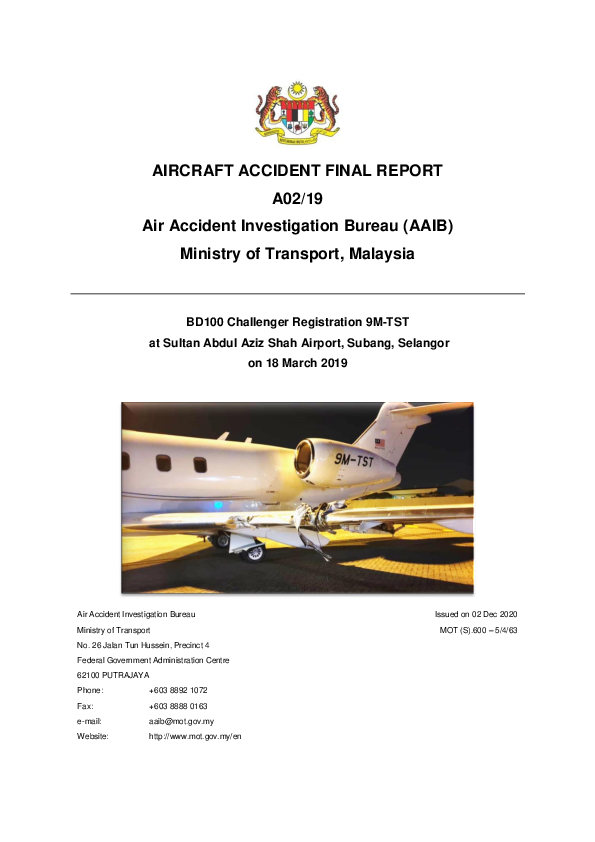 Final Report CL30 (9M-TST), Subang Malaysia, 18 March 2019