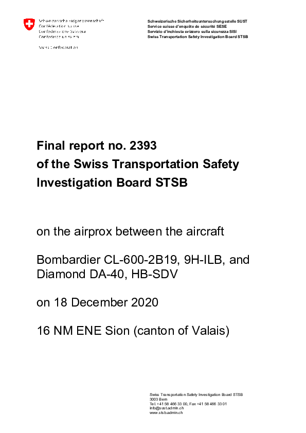 Final Report CRJ2 (9H-ILB) & DA40 (HB-SDV), en-route ENE of Sion Switzerland, 18 December 2020