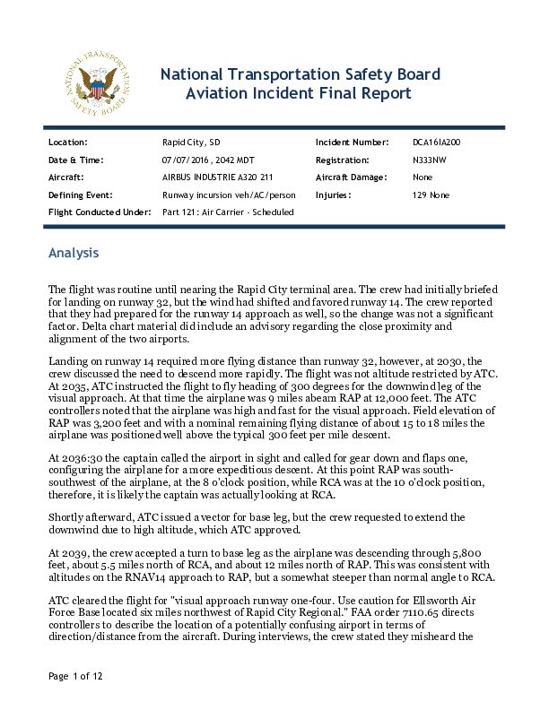 Final Report DCA16IA200: A320 landing at wrong airport, vicinity Rapid City SD USA, 7 July 2016
