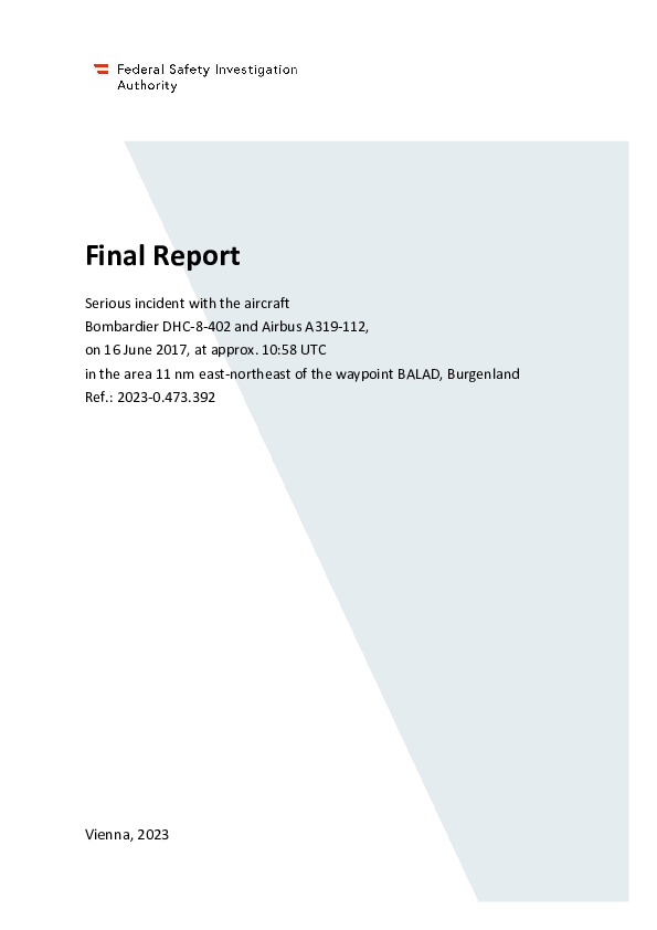 Final Report DH8D (OE-LGJ) & A319 (OE-LDG), vicinity Vienna Austria, 16 June 2017