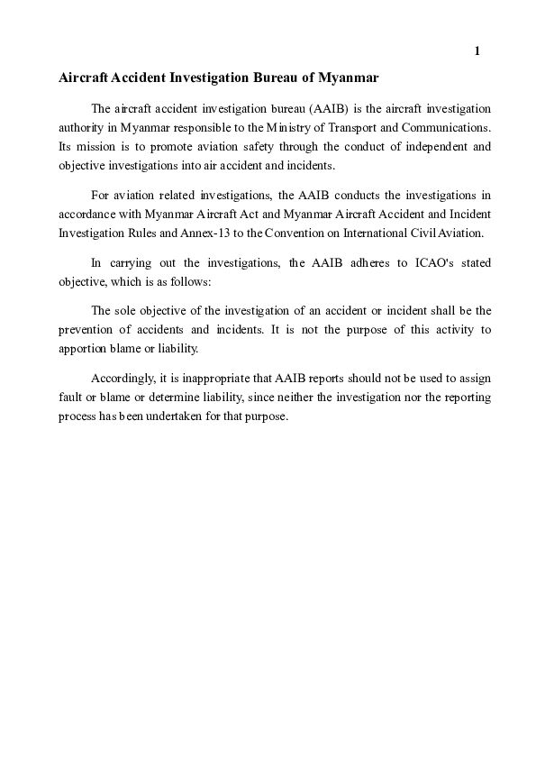 On 8 May 2019, a Bombardier DHC8-400 making its second approach to Yangon during a thunderstorm touched down over halfway along the runway after an unstabilised approach but then briefly became airborne again before descending very rapidly and sustaining extreme structural damage on impact before sliding off the end of the runway. The Investigation found that prior to the final rapid descent and impact, the Captain had placed the power levers into the beta range, an explicitly prohibited action unless an aircraft is on the ground. No cause for the accident other than the actions of the crew was identified.