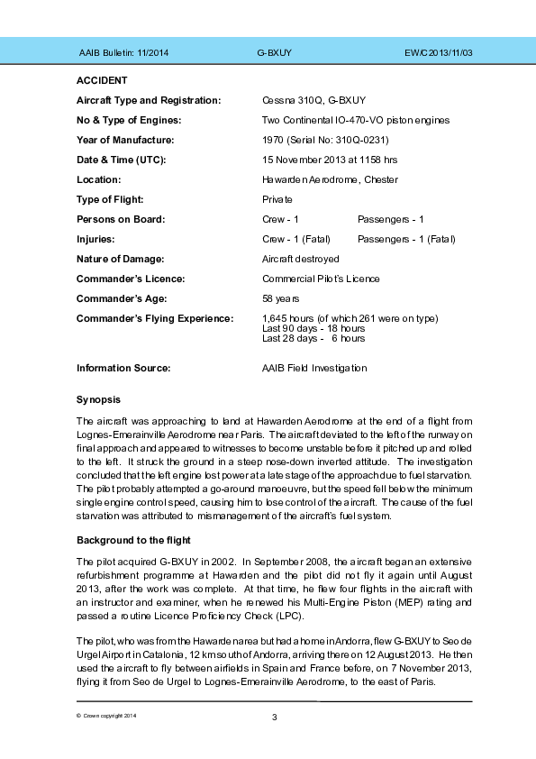 Final report, EW/C2013/11/03, C310, Hawarden, 2013