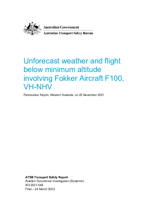 Final Report F100 (VH-NHV), Paraburdoo Australia, 22 November 2021
