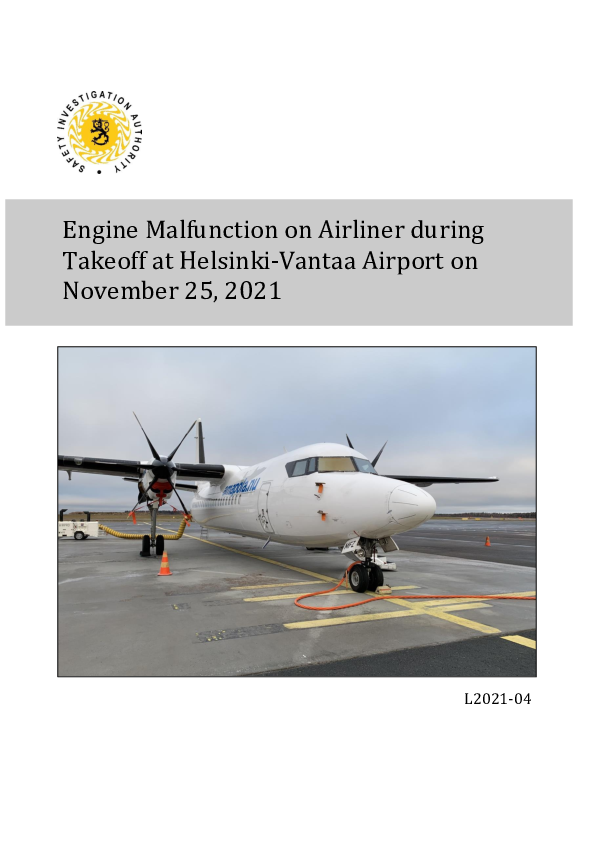 On 25 November 2021, a Fokker F50 departing Helsinki experienced an engine malfunction which resulted in un-commanded propeller feathering following which the associated engine continued to run until shutdown during which time it began to overspeed. Recovery to a landing was subsequently achieved but the failure experienced was untrained and this led to both direct and indirect consequences which resulted in a sub optimal crew response to the emergency. The Investigation also highlighted opportunities to improve aspects of the air traffic control emergency response during such emergencies and identified language proficiency certification issues.
