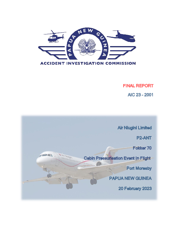 Final Report F70 (P2-ANT), vicinity Port Moreseby Papua New Guinea, 20 February 2023
