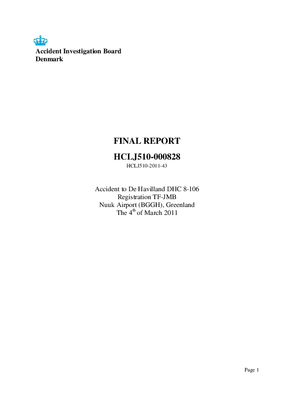 FINAL REPORT HCLJ510-000828, Accident to DH8 at Nuuk, Greenland, 4 March 2011
