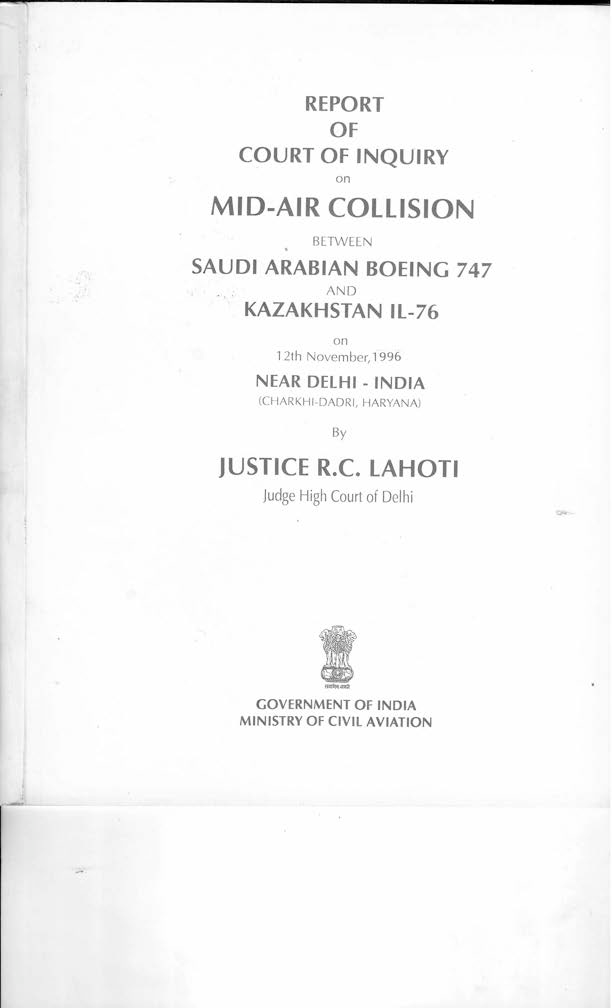 Final Report IL76 (UN-76435) & B741 (HZ-AIH), en route west of Delhi India, 12 Nov 1996