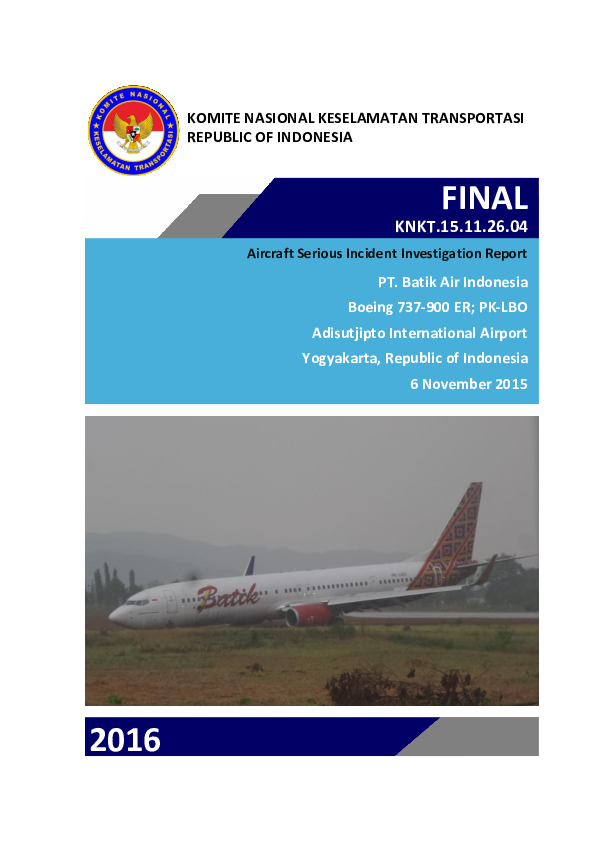 Final Report KNKT 15.11.26.04 B739 (PK-LBO) runway overrun Yogyakarta Indonesia, 6 Nov 2015