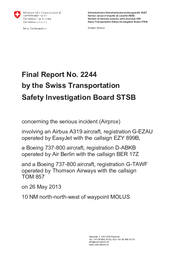 Final Report No. 2244: Airprox b/n A319, B738, B738 near Lausanne Switzerland 26 May 2013