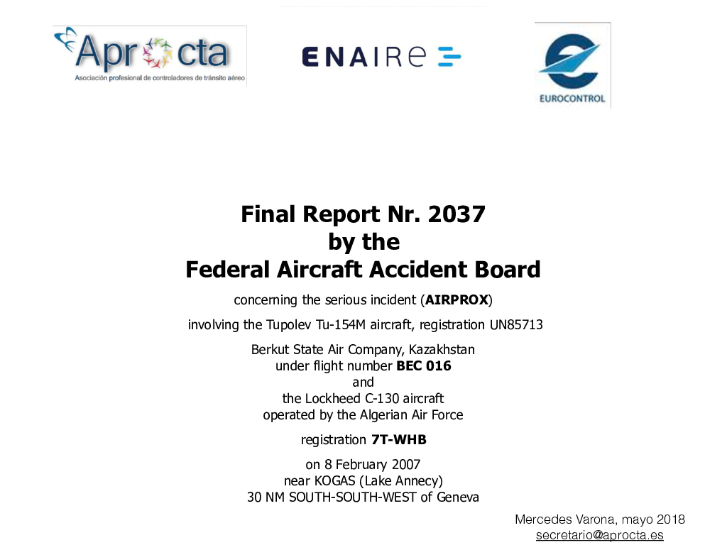 This presentation discussed the final report by the Federal Aircraft Accident Board concerning the serious incident (AIRPROX) involving the Tupolev Tu-154M aircraft.
