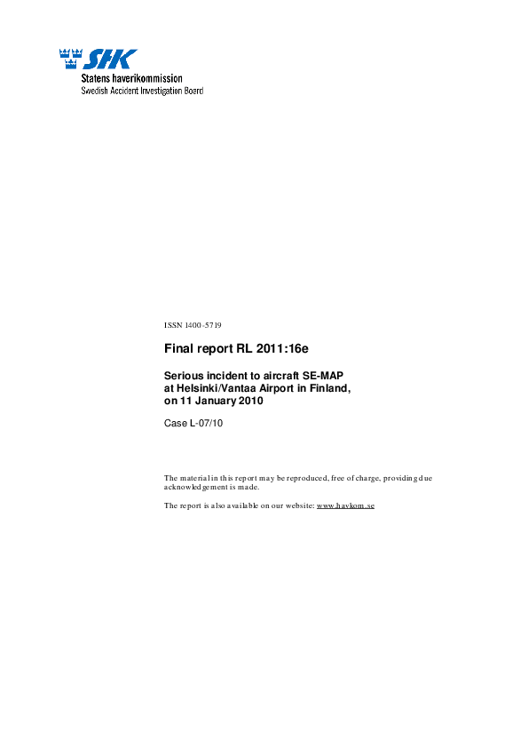 Final report RL 2011:16e, ATP rejected take off, Helsinki Finland, 11 Jan 2010