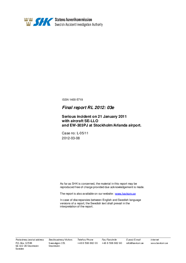Final report RL 2012: 03e, Loss of separation between CRJ2 and ATP, Stockholm Sweden 21 Jan 2011