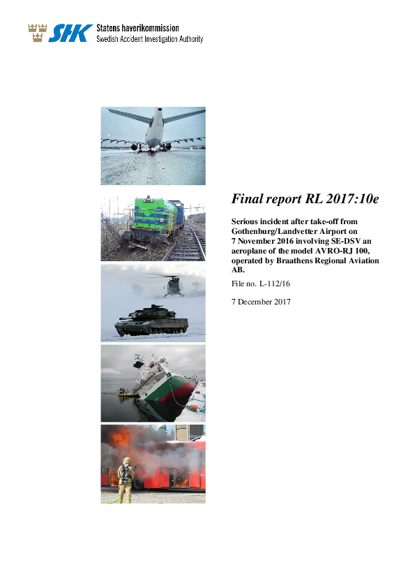 Final report RL 2017:10e - RJ1H (SE-DSV), vinicity Gothenburg Sweden, 7 Nov 2016