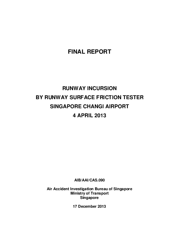 Final Report: Runway incursion by runway surface friction tester, Singapore Changi airport, 4 April
