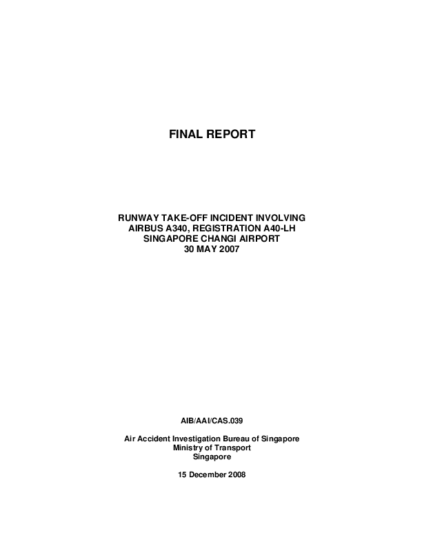 Final Report - Runway Take-Off Incident Involving Airbus A340, Singapore Changi Airport 30 May 2007