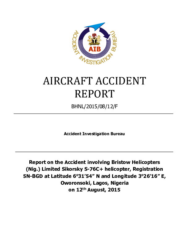 Final Report S76 (5N-BGD) vicinity Lagos Nigeria 12 Aug 2015