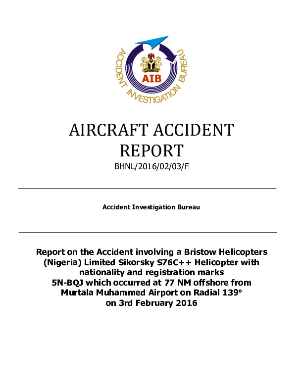 Final Report S76 (5N-BQJ) en route southeast of Lagos Nigeria, 3 Fev 2016