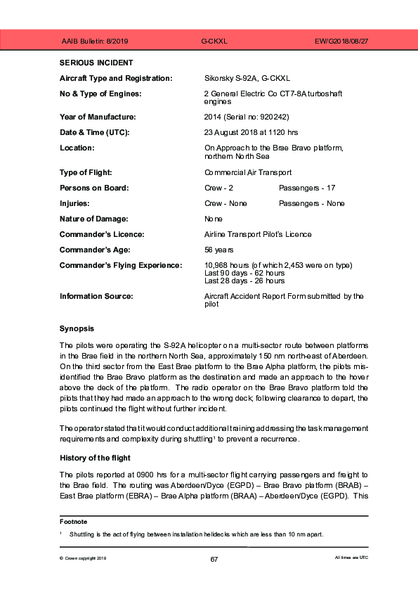 Final Report S92 (G-CKXL) northeast of Aberdeen UK, 23 Aug 2018