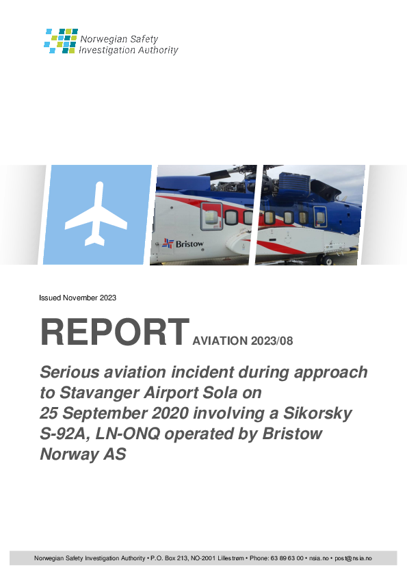 Final Report S92 (LN-ONQ), enroute SSW of Stavanger Norway, 25 September 2020